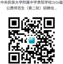 1.凡符合應(yīng)聘條件者,請(qǐng)點(diǎn)擊下方鏈接(https://f.wps.cn/g/klKlCfdj/)或掃下方二維碼填寫《中央民族大學(xué)附屬中學(xué)貴陽(yáng)學(xué)校2026屆公費(fèi)師范生(第二輪)招聘信息表》,填寫時(shí)請(qǐng)保證所提供的個(gè)人信息真實(shí)有效,若因提供虛假信息或隱瞞相關(guān)情況影響錄用的,后果自行承擔(dān)。
